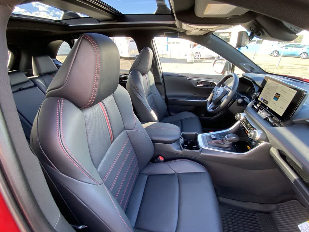 - Softex®-trimmed seats with sporty red stitching and fabric seat inserts; heated front seats; 8-way power-adjustable front driver's seat with lumbar support and seatback pocket; 4-way adjustable front passenger seat with seatback pocket.