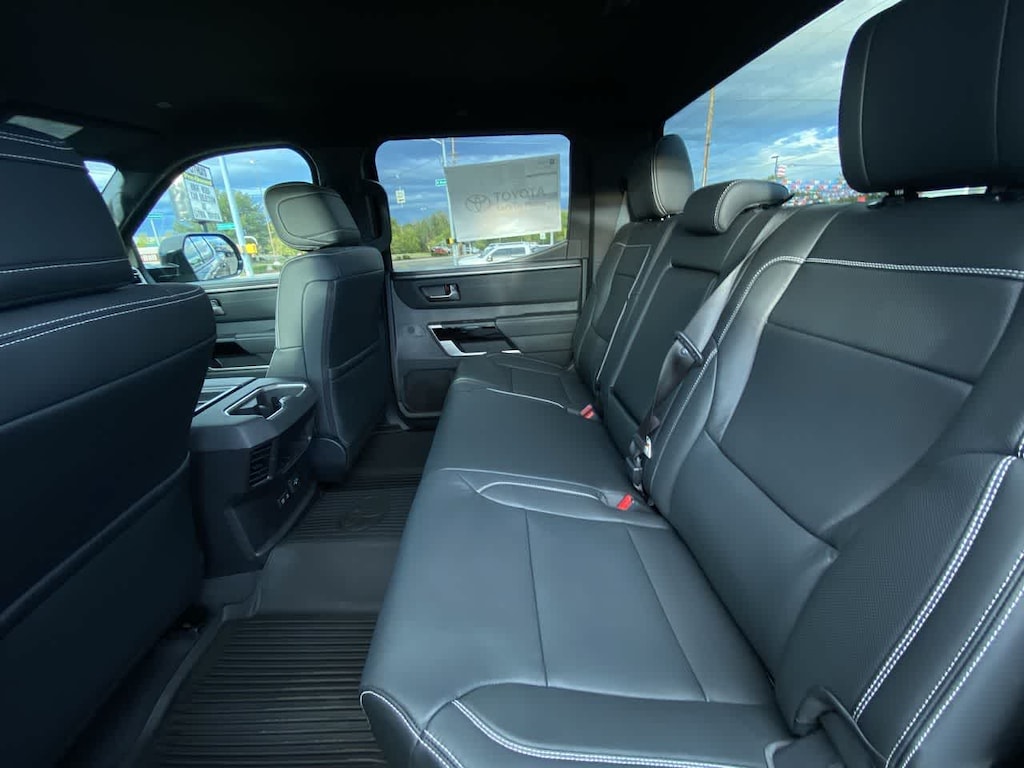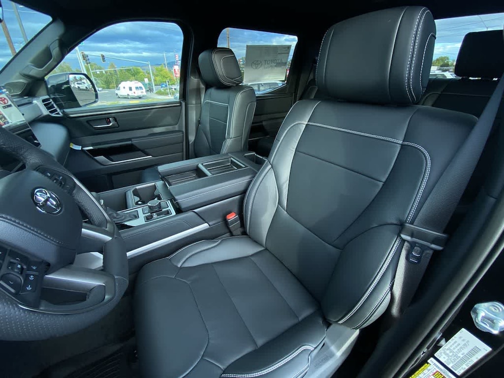 PANORAMIC VIEW MONITOR PACKAGE Panoramic View Back Monitor, NON-SKID SPRAY-ON BED LINER (TMS), JBL PREMIUM AUDIO 12 speakers, subwoofer and amplifier, NIGHTSHADE PACKAGE black overfenders, black rear bumper, gloss black window molding, gloss black door handles, gloss black mirror caps, gloss black tailgate handle and black Tundra badge and 4x4 badge, Wheels: 20 x 8J Matte Black TRD Sport Style, ALL WEATHER FLOOR LINERS (TMS), HEATED LEATHER STEERING WHEEL. Toyota Limited with Midnight Black Metallic exterior and BLACK interior features a V6 Cylinder Engine with 389 HP at 5200 RPM*.