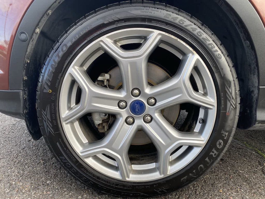 WHEELS: 19 BRIGHT-MACHINED ALUMINUM luster nickel-painted spokes and pockets, Tires: P235/45R19 A/S BSW, ENGINE: 2.0L ECOBOOST auto start-stop technology (STD). Ford Titanium with Cinnamon Glaze exterior and Charcoal Black interior features a 4 Cylinder Engine with 245 HP at 5500 RPM*.