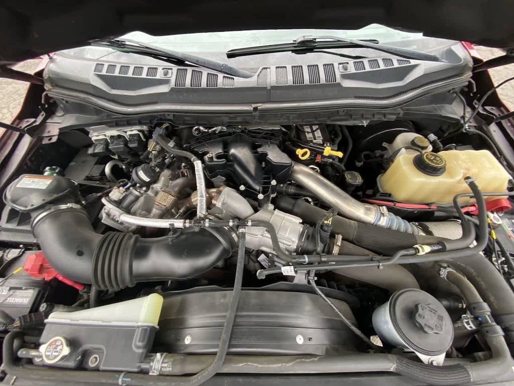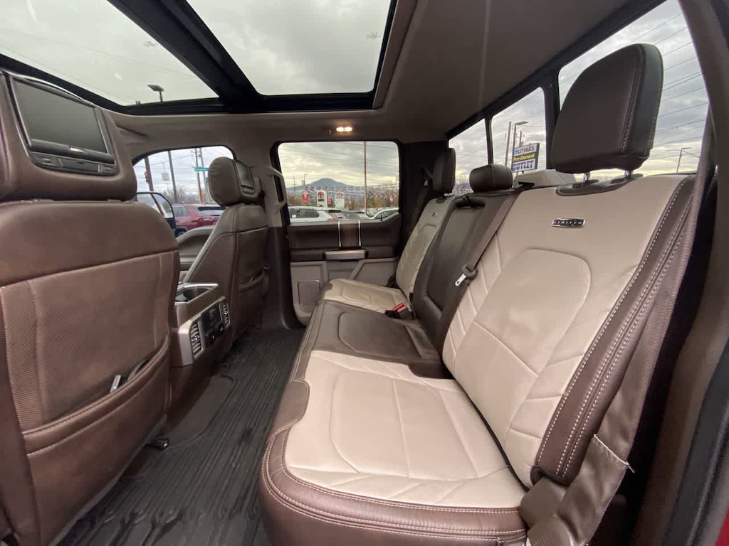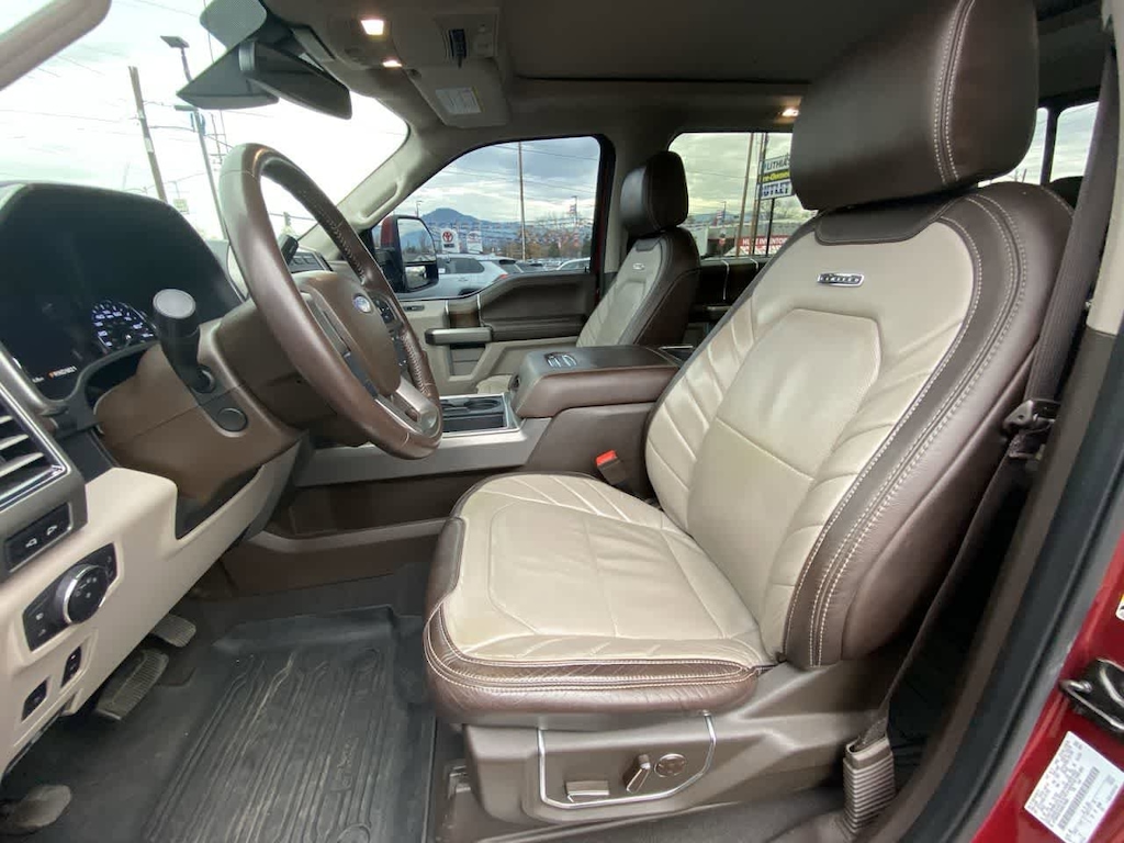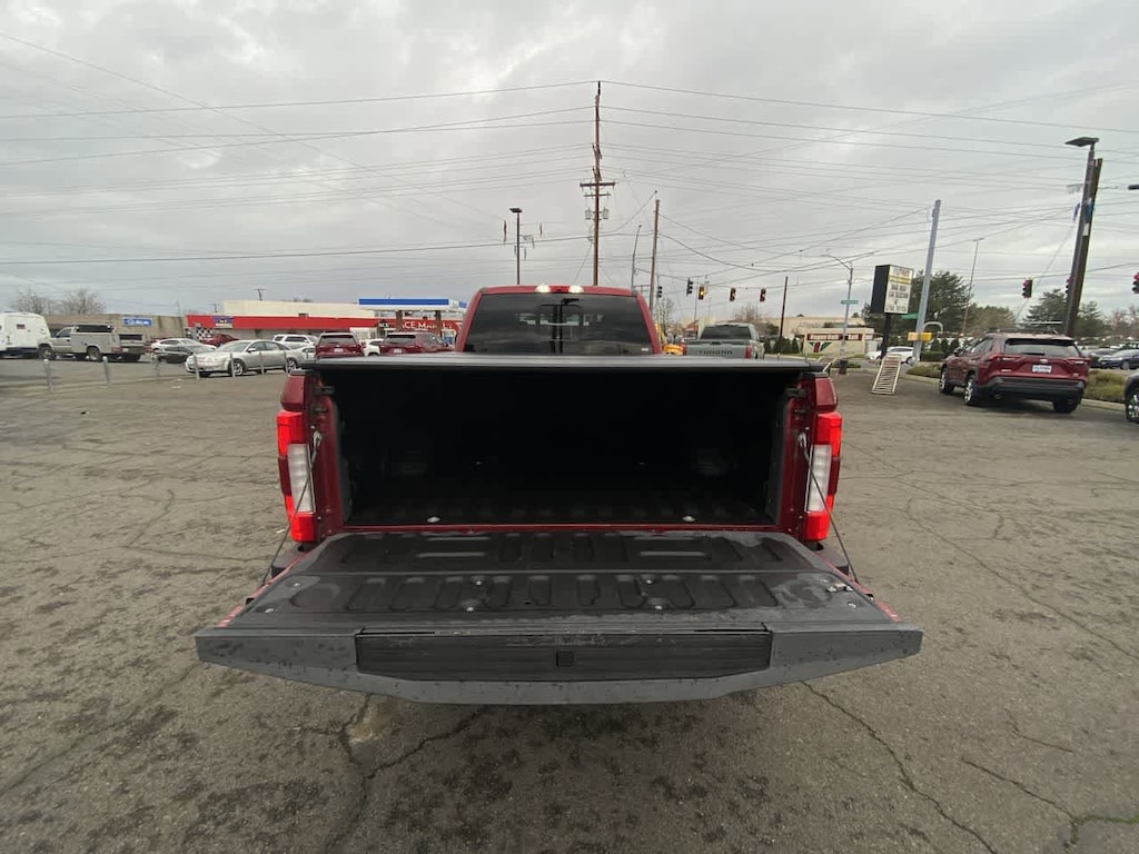 TOUGH BED SPRAY-IN BEDLINER tailgate-guard, black box bed tie-down hooks and black bed attachment bolts, ELECTRONIC-LOCKING W/3.55 AXLE RATIO, REAR INFLATABLE SEAT BELTS, TRANSMISSION: TORQSHIFT 6-SPEED AUTOMATIC (6R140), SelectShift (STD), ENGINE: 6.7L 4V OHV POWER STROKE V8 TURBO DIESEL B20 manual push-button engine-exhaust braking and intelligent oil-life monitor (STD). Ford Limited with Ruby Red Metallic Tinted Clearcoat exterior and Camelback interior features a 8 Cylinder Engine with 450 HP at 2800 RPM*.