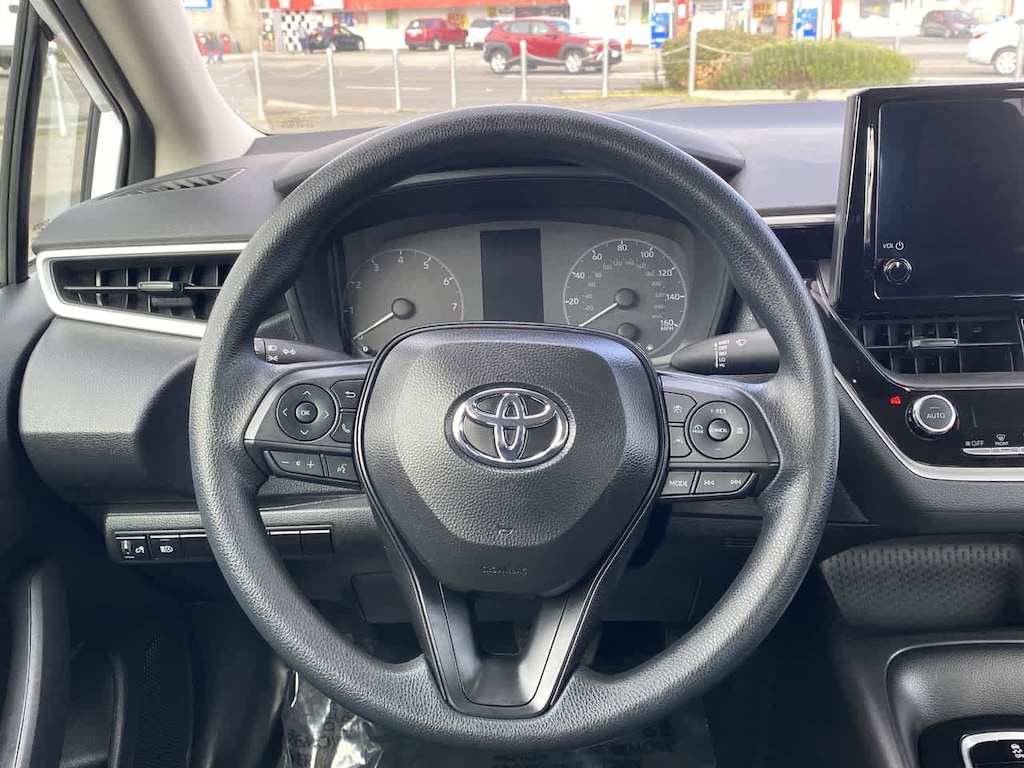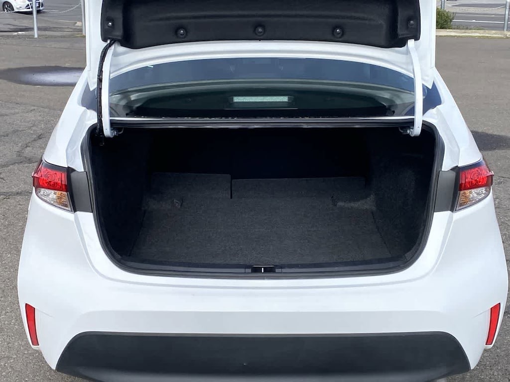 Back-Up Camera, Satellite Radio, iPod/MP3 Input, Onboard Communications System, Apple CarPlay®, WiFi Hotspot, Lane Keeping Assist, Cross-Traffic Alert, Smart Device Integration. MP3 Player, Remote Trunk Release, Keyless Entry, Steering Wheel Controls, Child Safety Locks. Toyota LE with Ice Cap exterior and Black interior features a 4 Cylinder Engine with 169 HP at 6600 RPM*.